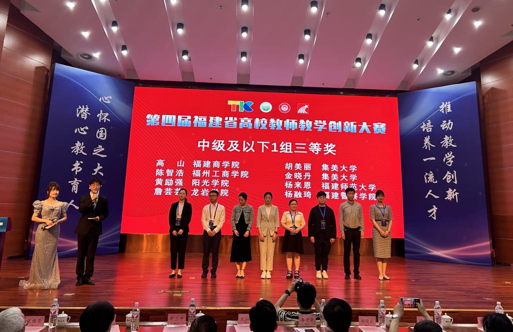 4月24-26日,由福建省教育厅主办的第四届福建省高校教师教学创新大赛现场评审赛在集美大学落下帷幕。 我校罗成立教师团队(成员:程勇勇、程悦、张亮)荣获正高组一等奖(第一名),将代表我省参加全国大赛(同类高校唯一获得国赛参赛资格团队)。潘津教师团队(成员:杨淑惠,范太胜)荣获副高组三等奖、黄励强教师团队(成员:张宏、吴冬原、江信桐)荣获中级及以下组三等奖。