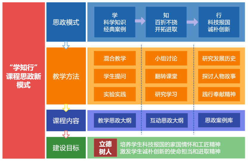 图1 “学知行”立德树人课程思政新模式 课程思政建设方向聚焦于培养学生的创新思维、实践能力和职业道德,通过案例分析、小组讨论、项目实践等多种形式,让学生在掌握编程技能的同时,深刻理解技术背后的社会价值和责任。我们优化课程思政内容供给,将思政元素自然融入课程教学中,使学生在潜移默化中受到熏陶和启迪。 通过课程思政建设,我们旨在培养具有扎实编程基础、良好职业素养和高度社会责任感的高素质计算机专业人才,为国家和社会的发展贡献力量。 |
