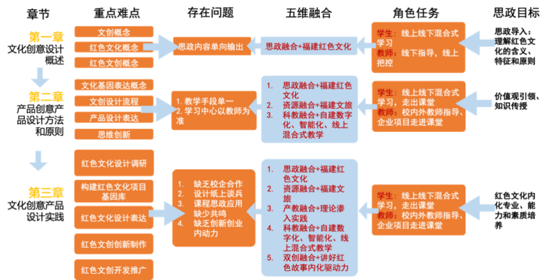 (近5年来教学团队在组织实施本课程教育教学、开展课程思政建设、参加课程思政学习培训、集体教研、获得教学奖励等方面的情况。如没有教学团队,可填无) 本课程教学团队坚持立德树人,已成为一支能力较强、教学效果较好具有较好社会影响的教学队伍。团队获得第二届阳光学院教学创新大赛三等奖。 参加课程思政学习培训及集体教研情况: 2021年9月参加《全国高等院校课程思政建设暨纲要解读、案例剖析、课程设计及示范课建设专题培训会》。 2021年11月,课程建设团队在线参与厦门大学吴凡副教授讲授《课程思政教学设计与实践》教学教学培训系列之大师讲座。 2020年6月29日,课程建设团队参加了“课程思政的理论思考与实践探索”专题公开讲座,该讲座由人邮教师学院课程思政示范校北京联合大学党委委员、马克思主义学院常务副院长仲计水博士讲授,课程团队教师认真听讲,受益匪浅,加深了对课程思政的理解,对课程思政的实践路径有了更深的认识。 2019年11月28日,课程建设团队举办 “课程思政”培训会暨集体备课会。党总支副书记兼副院长卢健涛教授以《门门有思政,人人讲育人》为题,围绕“为什么要做课程思政”、“怎么做课程思政”及“课程思政教学实践”三个部分展开培训及示范教学。结合《设计图学》、《工业设计与人文关怀》课程讲授如何开展课程思政教学实践。 教学团队情况: 翁炳峰教授:教学及教改经验丰富,近 5 年承担课程一线授课总时长336学时。开展课程思政教学实践和理论研究项目: 2006年11月,《教育要为海峡西岸经济区动漫产业培养实用性的人才》福建省教育厅社科。 2009年4月,《闽台高校动漫影像基础教育的就业互动前景研究》福建省教育厅社科。 2014年4月,教育部《生物技术与生物化工》虚拟仿真教学实践中心,设计团队。 2014年12月,《艺术设计系列课程案例库建设》福建师范大学研究生教学案例。 2017年7月,福建省教育厅教改项目《省级精品资源共享课程(创新创业教育与专业教育融合类)动画实训——原画设计》 2018年12月,《艺术设计系列课程案例库建设》福建师范大学研究生教学案例 。 2019年6月,福建省教育厅教改项目《“四协同”、“五进式”产教融合应用型人才培养模式改革》。 在《装饰》、《艺术设计》、《美术与设计》、《福建师范大学学报》等刊物发表论文二十余篇。出版《图形创意》、《设计本色--创意思维》等书籍6部;获得第八届海峡两岸信息服务创新大赛、暨福建省第十一届计算机软件设计大赛获二等奖(福建省宣等七部委)等奖项数十项;《艺术设计系列课程案例库建设》等省部级以上社科课题7项;近五年完成武夷山国家公园标志设计、福建省第十六届运动会觉形象系统设计等服务社会主要设计项目近二十项。 吴辛迪老师:近5年主要讲授《产品创新设计与实践》、《设计与制作(网页设计)》、《室内设计(CAD)》、《表现技法》等课程。参与申报国家级教改课题1项,主持校级课题2项。参与省级教改2项,校级教改3项。发表教改论文一篇,指导学生发表论文一篇。指导学生在中国国际“互联网+”创新创业大赛、全国大学生计算机设计大赛、福建文创奖等重要比赛中收获佳绩。获得“国青杯”艺术设计大赛优秀指导教师奖等荣誉,教学成果奖一等奖。在19年教学测评中专业排名第一。多次获得“优秀工作者”,“服务育人奖”等荣誉。 黄励强老师:近5年主要讲授《产品创新设计与实践》、《产品设计CAD》、《产品设计表现技法》、《计算机辅助设计》等课程。发表了一篇教改类CSSCI核心期刊论文,积极推进竞赛和教学的融合,指导学生将课程成果转化为学科竞赛项目,并在中国国际“互联网+”创新创业大赛、全国高校艺术设计大、全国大学生计算机设计大赛、福建文创奖等重要比赛中收获佳绩。获得全国高校数字艺术大赛优秀指导教师奖、“国青杯”艺术设计大赛优秀指导教师奖等荣誉。 卢建涛老师:副教授,硕士生导师,设计学院副院长,数字媒体技术专业负责人,中国机械工程学会工业设计专业分会理事。曾任福州大学数字媒体与网络工程系系主任,2004年创办福建省第一个数字媒体专业,指导数字媒体技术和数字媒体艺术专业学生600多名。近年来在省部级核心刊物上发表科学研究论文和政策建议4篇,出版教材二部。主持省科技厅和企业委托的科研课题4项,科研总经费20多万元。 宋海霞老师:助理研究员,设计学院党总支书记。本科毕业于福州大学计算机科学与技术专业,硕士毕业于福建师范大公共管理学院。曾获得福州市“优秀党务工作者”、福州大学“优秀党务工作者”、阳光学院“优秀共产党员”、阳光学院“先进教育工作者”、阳光学院“毕业生就业工作先进个人”等50余项荣誉称号。近五年,发表《民办高校艺术类学生思想政治教育的有效途径研究》等工作研究论文7篇,获评阳光学院思政年会优秀典型经验及研究论文评选一等奖、福州市教育系统学校党建与管理工作论文三等奖。主持完成福建省团青工作和大学生思想政治教育研究课题《民办高校专业教师与思政辅导员协同育人机制研究》,获评福建省团青工作和大学生思想政治教育研究课题评审三等奖。所带基层党支部获批省级样板党支部,所带党总支被评为校级优秀党总支及党建与思政工